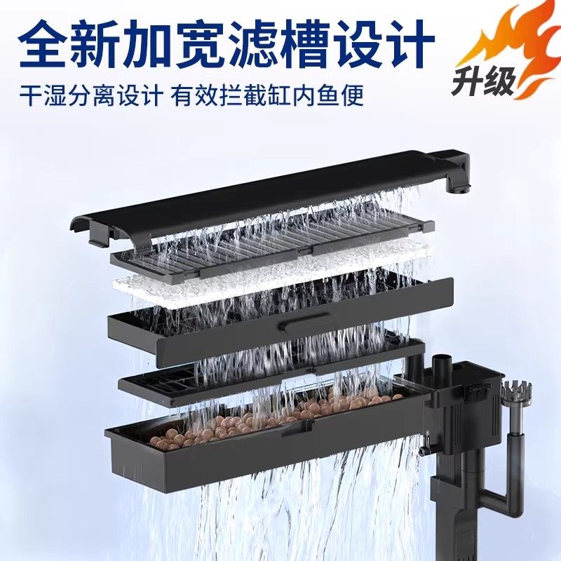 莱易欧2026新款3层干湿分离盒超白玻璃鱼缸客厅底滤水族箱溪流缸
