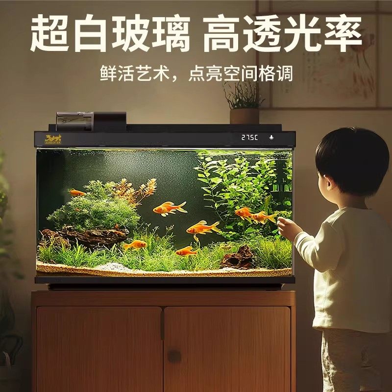 天江彩鱼缸2025新超白玻璃底过滤大中型水族箱免换水客厅龙鱼缸静音