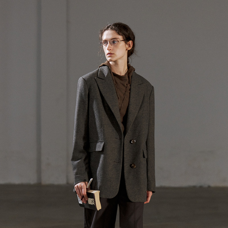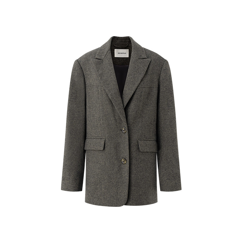 淘宝NON RESTRAIN羊毛混纺休闲西装外套女高级戗驳领垫肩通勤显瘦西服