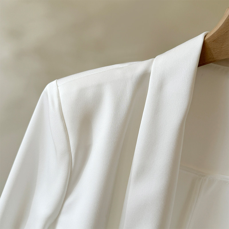 淘宝Met Endi西装外套2024夏季新款女款纯色七分袖缎面感薄款西服上衣