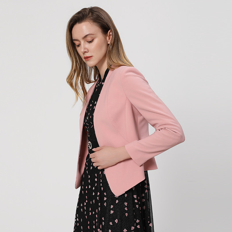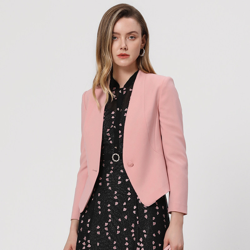 天猫专柜正品马天奴女装秋冬粉色V领一粒扣修身西装外套短款西服