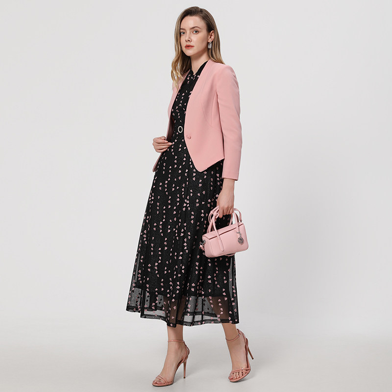 专柜正品马天奴(TANINO)女装秋冬粉色V领一粒扣修身西装外套,采用高品质面料,剪裁精致,凸显女性优雅气质。经典V领设计拉长颈部线条,一粒扣门襟简约利落,展现干练又不失柔美的职场风范。修身版型贴合身形,短款设计优化身材比例,轻松搭配高腰裤或半身裙。柔和的粉色调为秋冬增添一抹温暖与浪漫,适合通勤、约会或休闲场合。细节处彰显品牌匠心,走线工整,内里做工考究,兼具舒适与质感。马天奴以意式优雅著称,此款西装外套完美诠释现代女性的自信与魅力,是秋冬衣橱不可或缺的时尚单品。