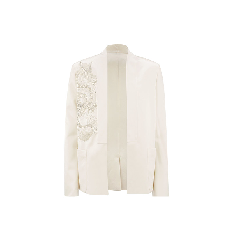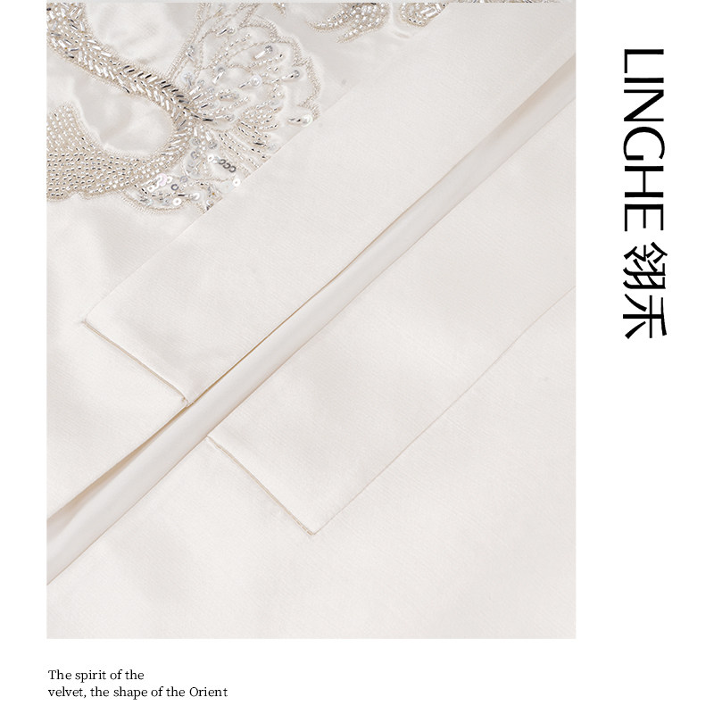 天猫翎禾LINGHE「白霜银龙」-重工龙纹刺绣气质西装外套长袖女士轻奢
