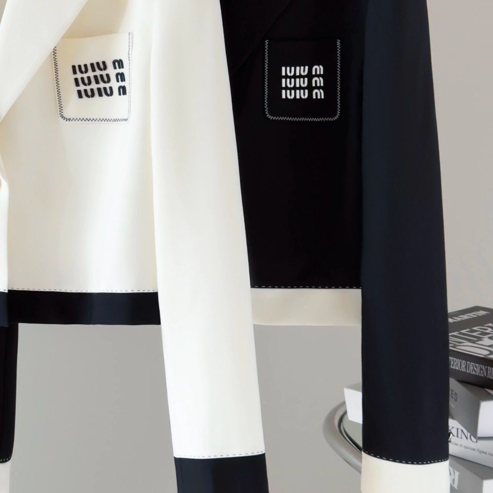 淘宝miu风廓形西装外套女2025年春款黑白撞色高级感超短款西服上衣
