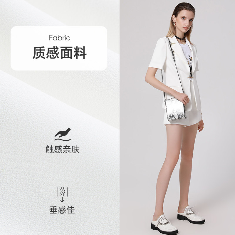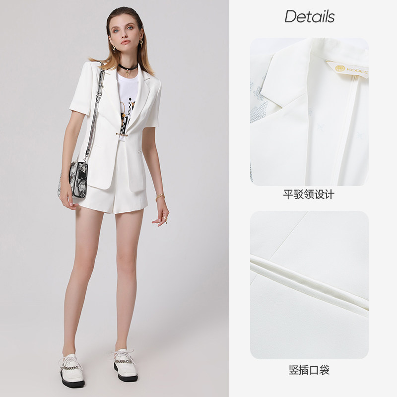 天猫KODICE女装白色平驳领短袖收腰西装西服外套时尚通勤百搭
