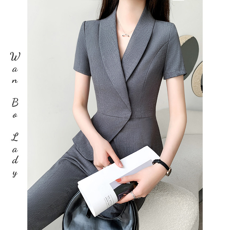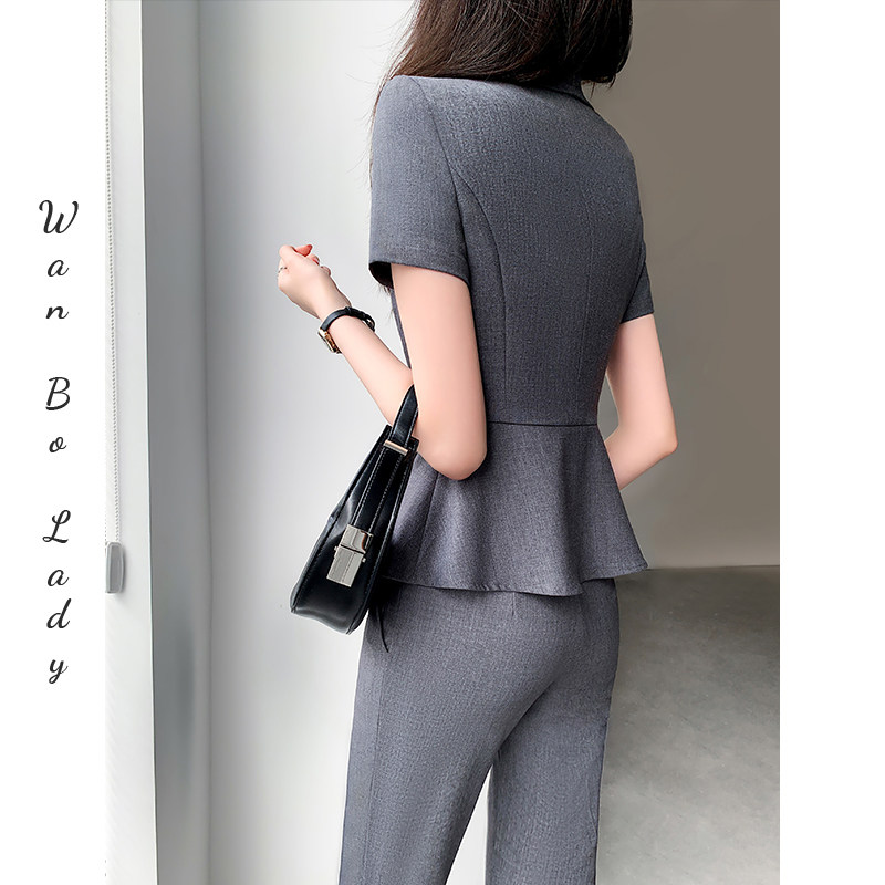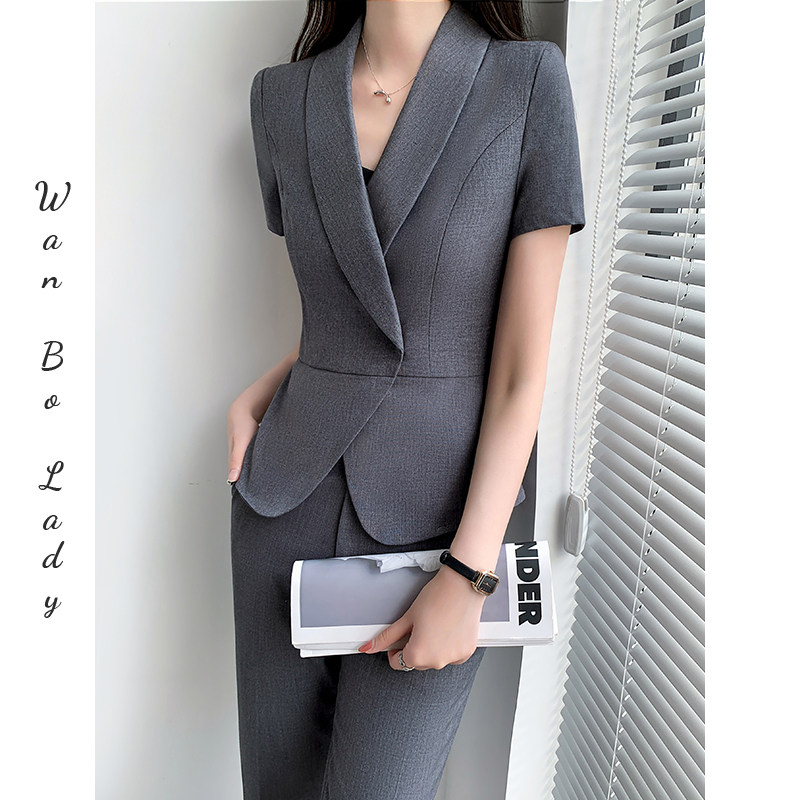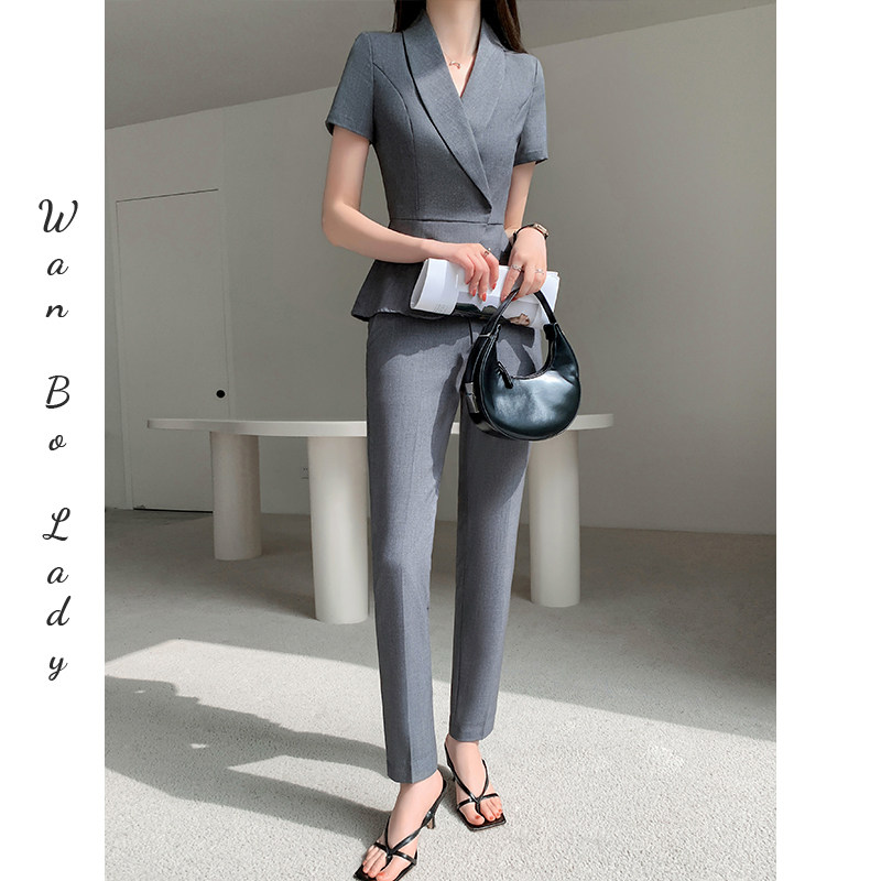 天猫高级西装套装女夏季薄款御姐炸街外套九分裤坠感职业装休闲两件套
