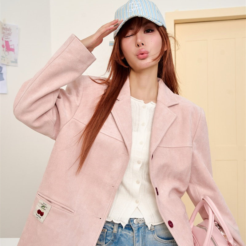 天猫CLOUDSEASON粉色桃桃西装外套女2025新款宽松时尚春秋外套女