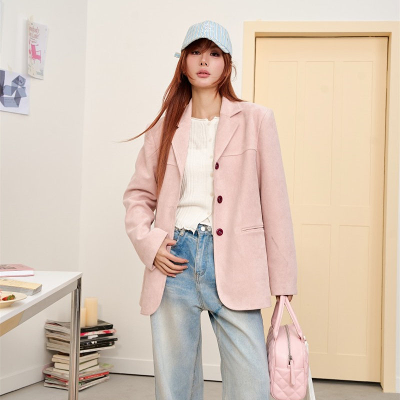 CLOUDSEASON粉色桃桃西装外套女2026新款,以温柔浪漫的蜜桃粉为主色调,融合宽松廓形与时尚剪裁,打造兼具优雅与休闲的都市女性形象。采用轻盈挺括面料,穿着舒适又不失型格,适合春秋季节日常通勤或出街搭配。精致翻驳领设计与单排扣门襟,细节考究,凸显高级质感。宽松版型包容性强,轻松驾驭多种身材,可搭配连衣裙、牛仔裤或阔腿裤,展现随性 chic 风格。无论是职场还是约会,这款外套都能为你增添一抹甜美又不失干练的气质,是2026年不可错过的时尚单品。