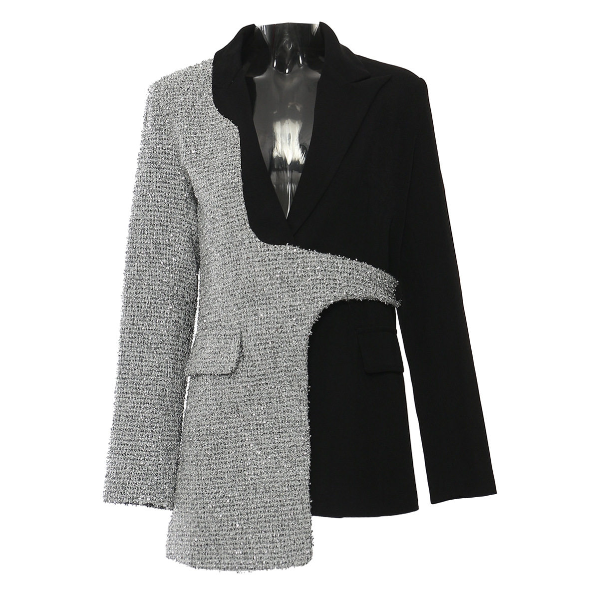 淘宝EAM STUDIO2024炸街高级不对称裁剪拼接设计感西装外套女走秀上衣