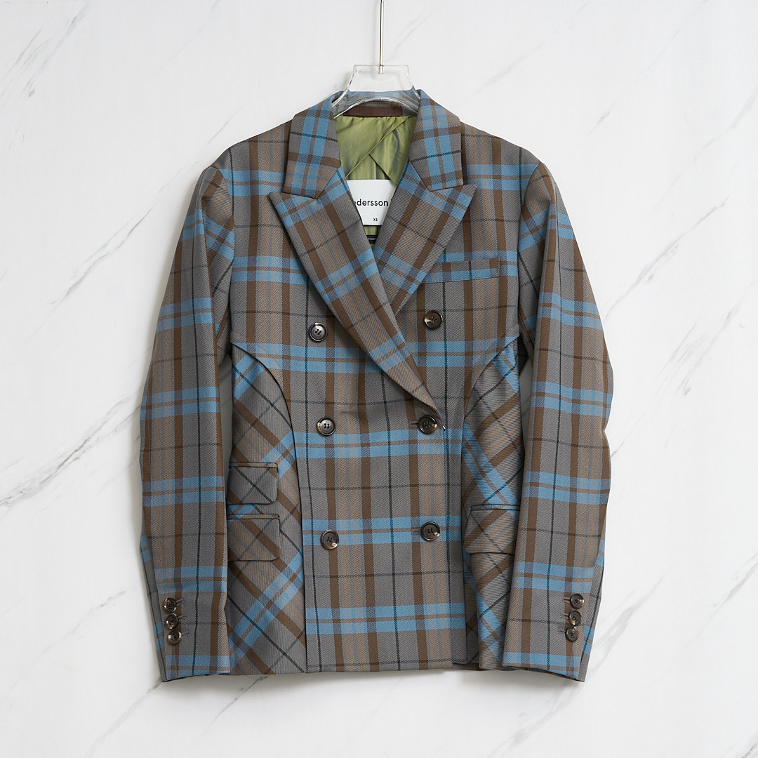 天猫ANDERSSON BELL 女士羊毛纹格子休闲西装外套银泰百货精品 301596