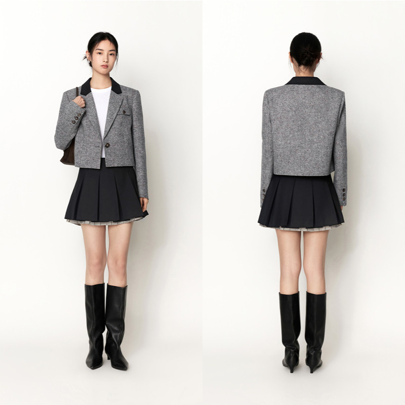 天Lavinia 秋冬新款美拉德老钱风含羊毛肌理感西装外套女B47W04