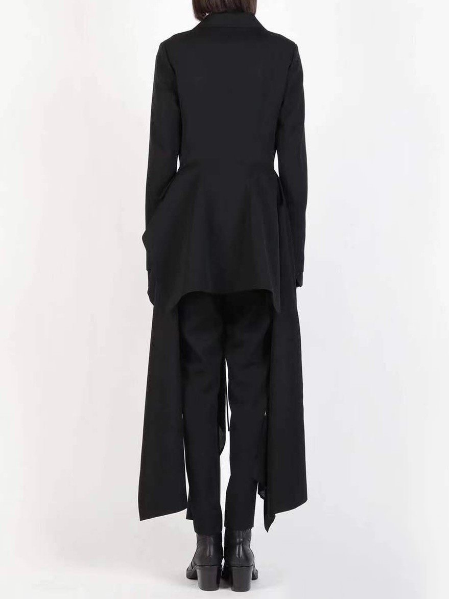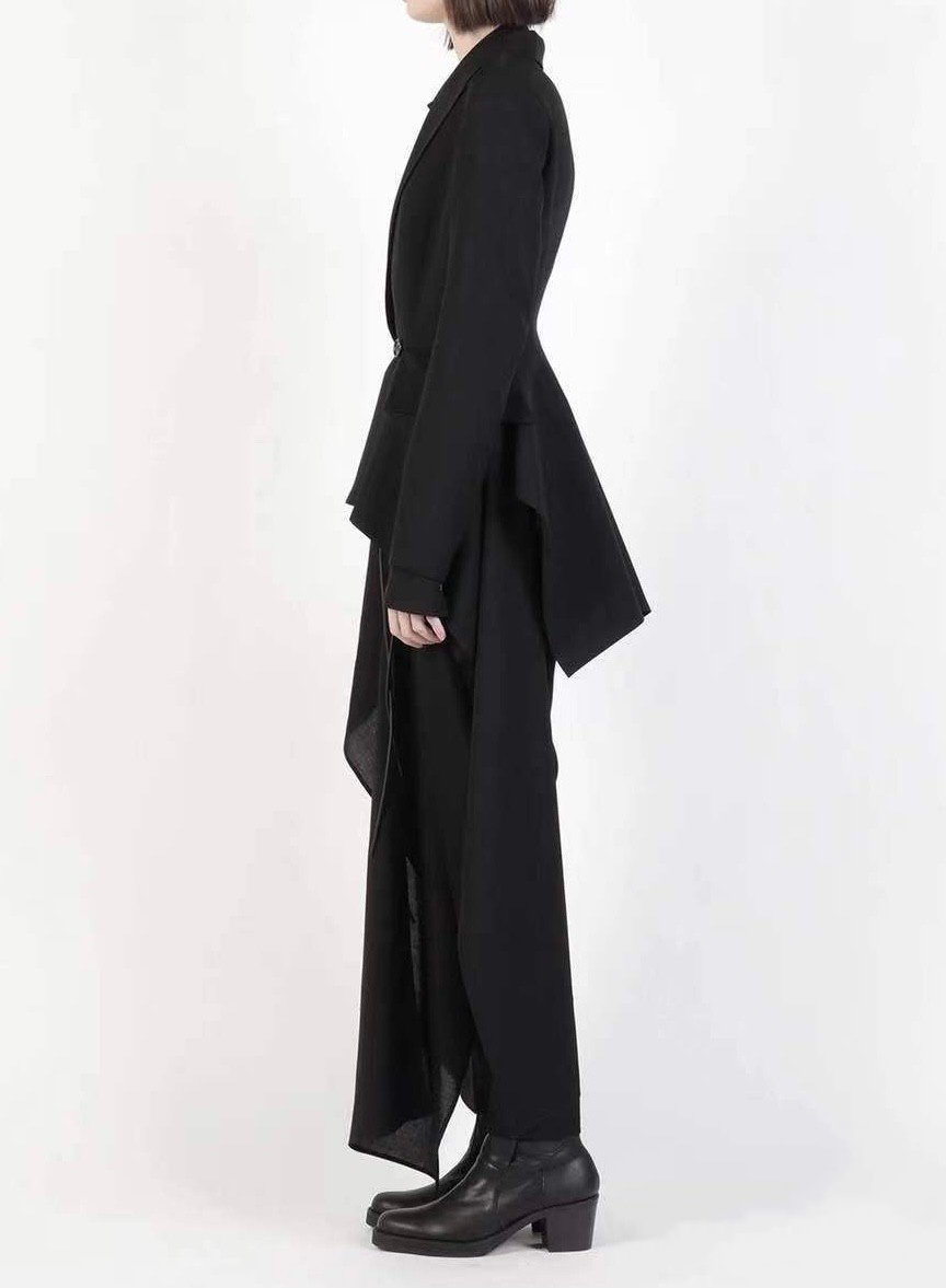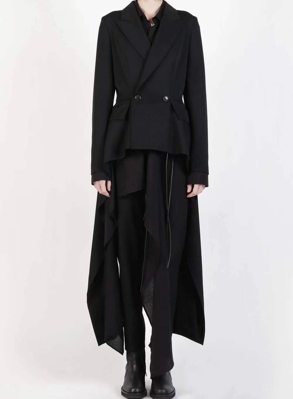 淘宝定制2023春夏暗黑系先锋设计师小众品牌女装不规则中长黑色女西装