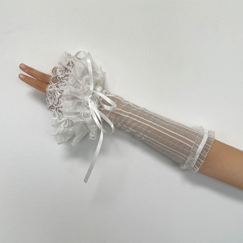 淘芭蕾风y2k洛丽塔手套白色蕾丝袖套女薄款夏季防晒辣妹绑带长露指