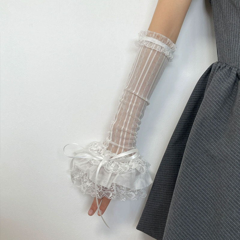 淘宝洛丽塔少女手袖多层蕾丝花边蝴蝶结绑带防晒袖套亚文化动漫手套长