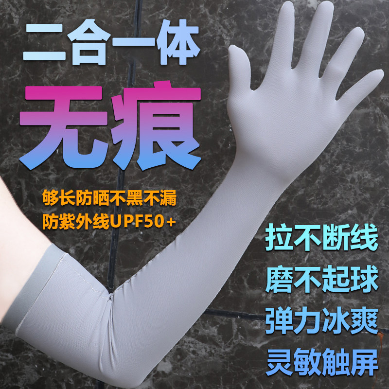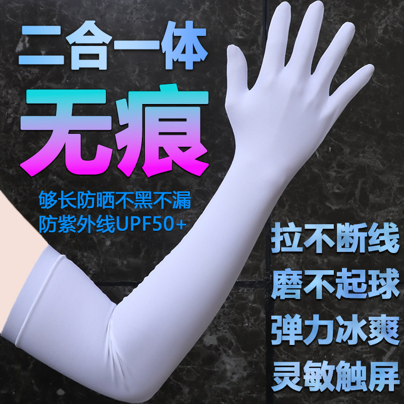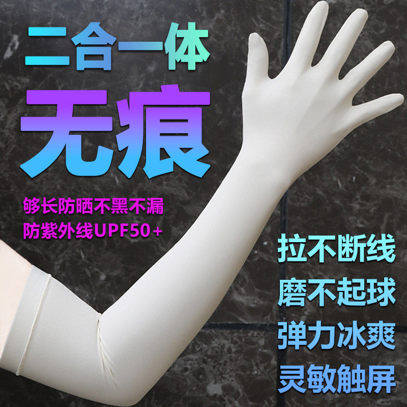 淘宝二合一体千蛛无痕触屏防晒袖套夏季男女长款臂套户外冰丝冰袖手套