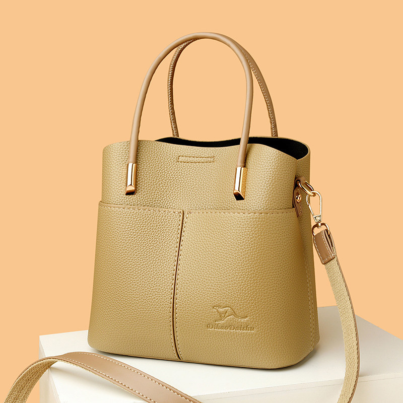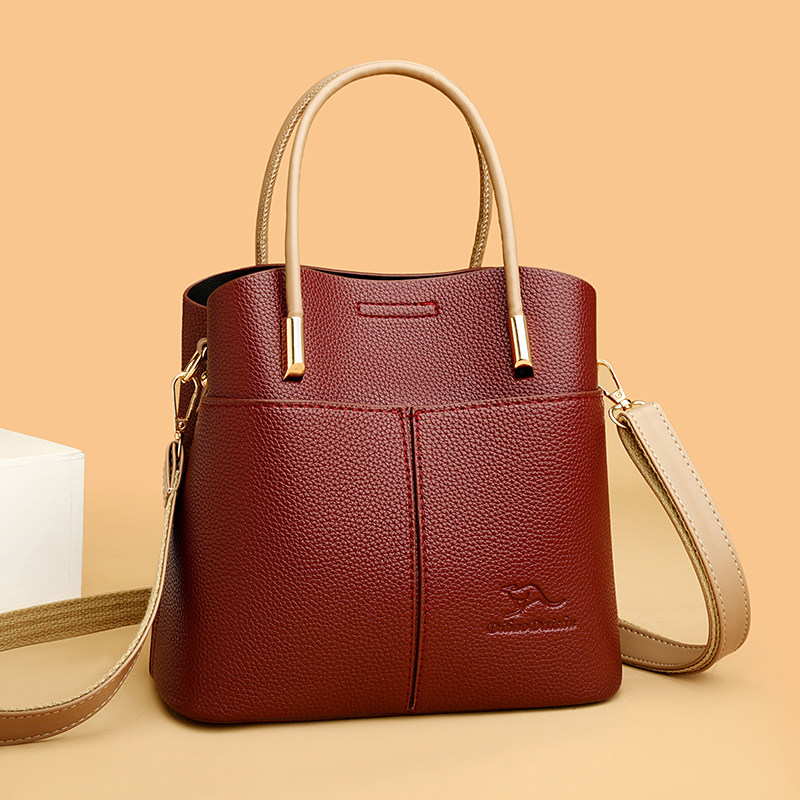淘宝帝豪袋鼠真皮水桶包女百搭手提包高级感休闲单肩斜挎包欧洲站女包