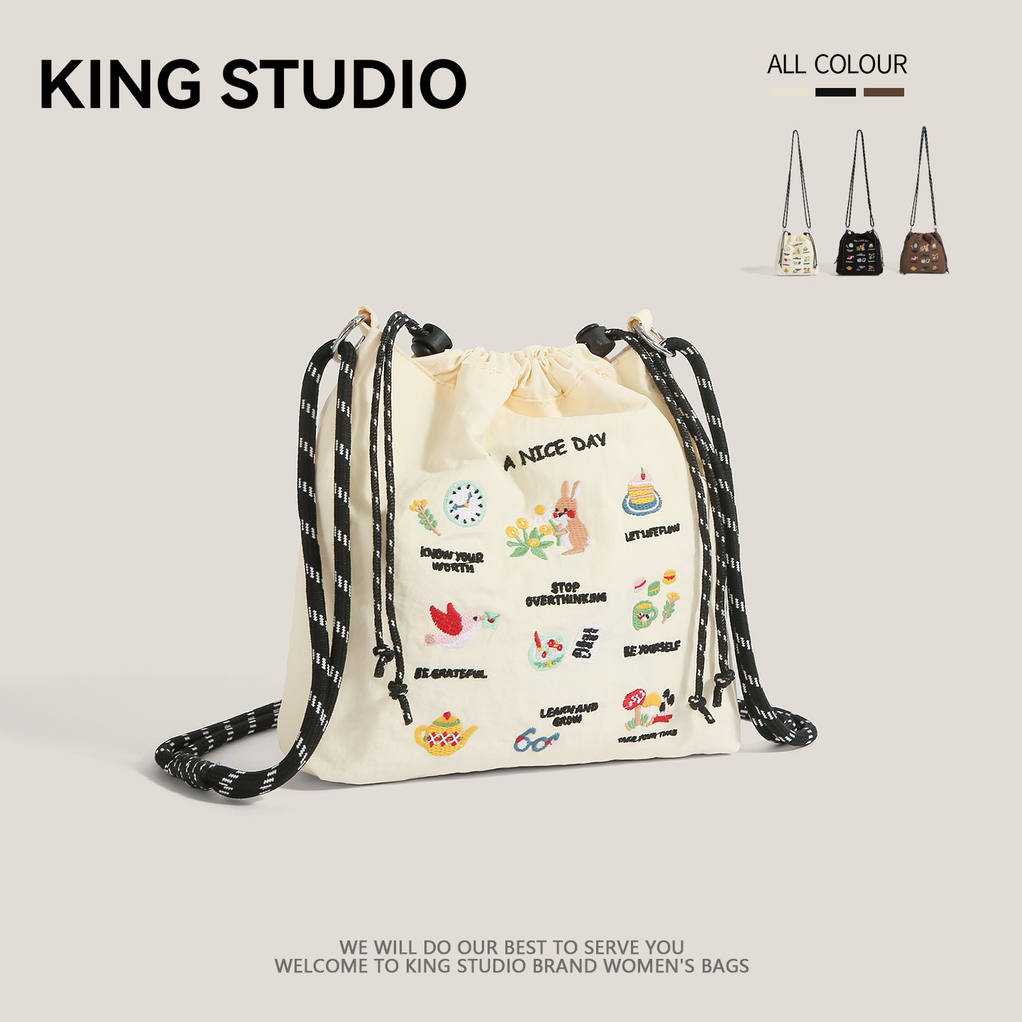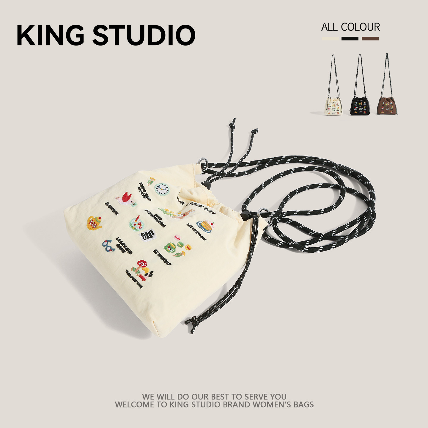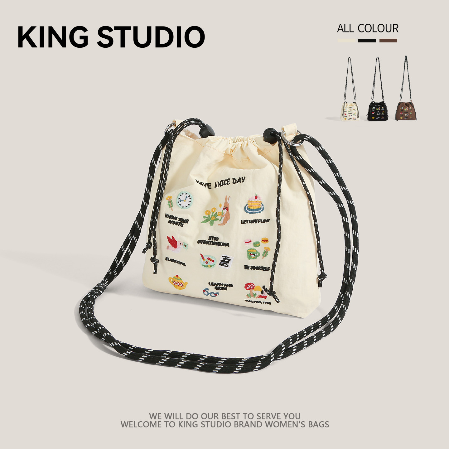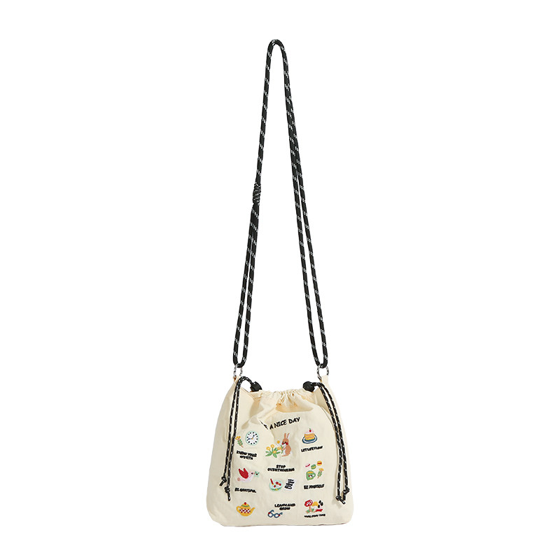 2025年夏季新款小众休闲尼龙布刺绣水桶包,融合轻盈防水尼龙材质与精致手工刺绣,兼具实用与美学。抽绳设计轻松开合,水桶造型容量适中,可收纳手机、钥匙、口红等日常小物。单肩斜挎两用背法,解放双手,适合逛街、旅行或日常通勤。包身小巧却不失设计感,刺绣图案清新雅致,彰显独特品味。多色可选,百搭夏日穿搭,是追求个性与舒适并重的女性理想之选。轻便耐用,细节考究,让夏日出行更添一抹文艺气息。