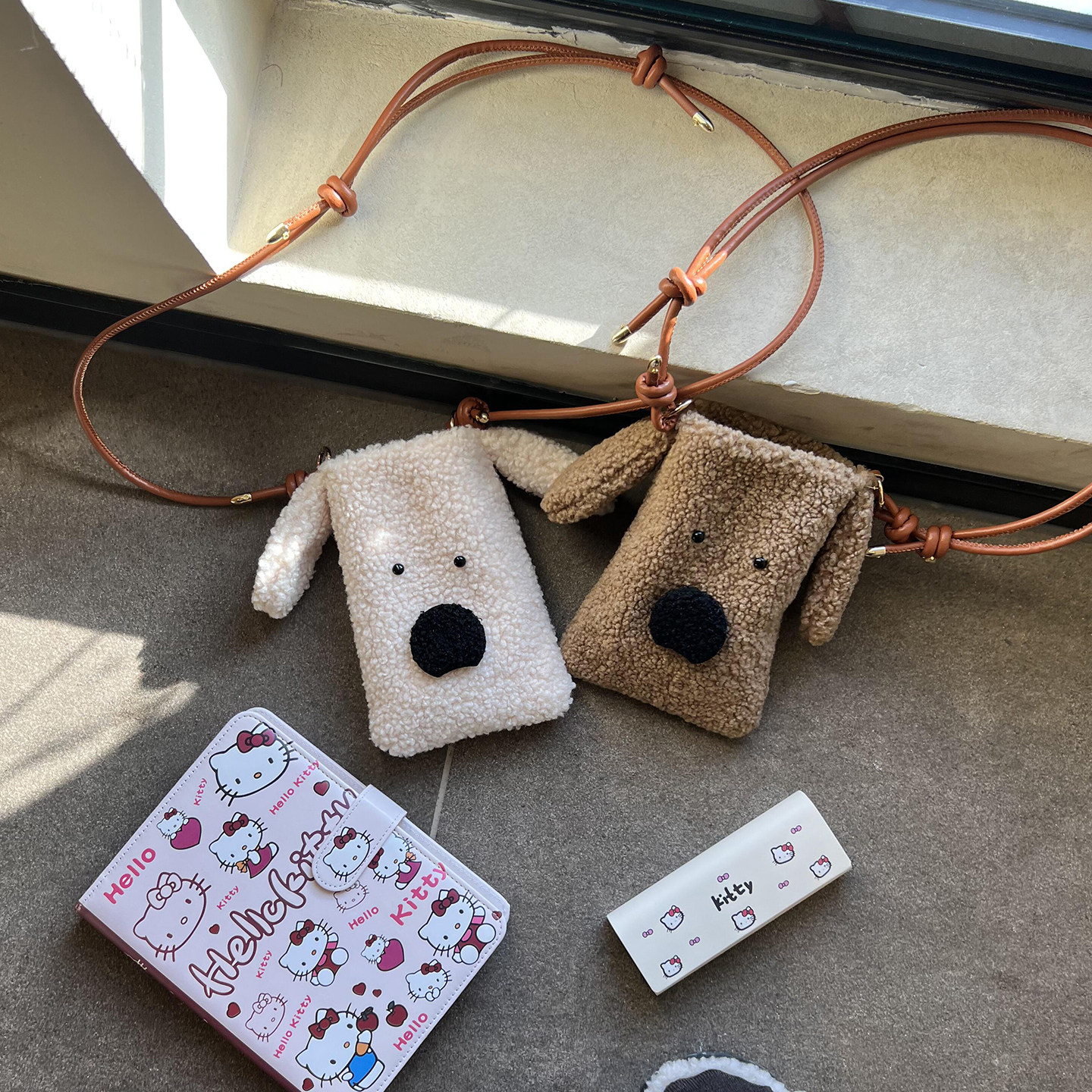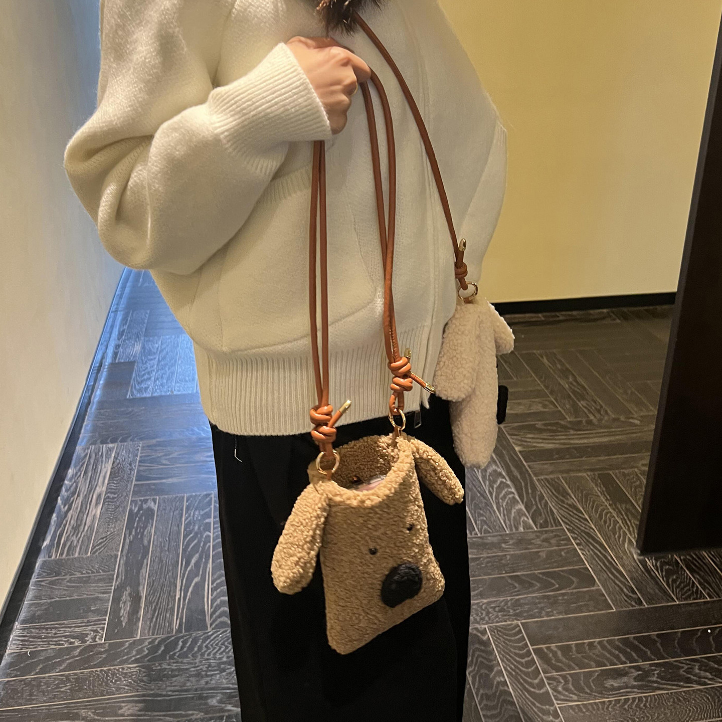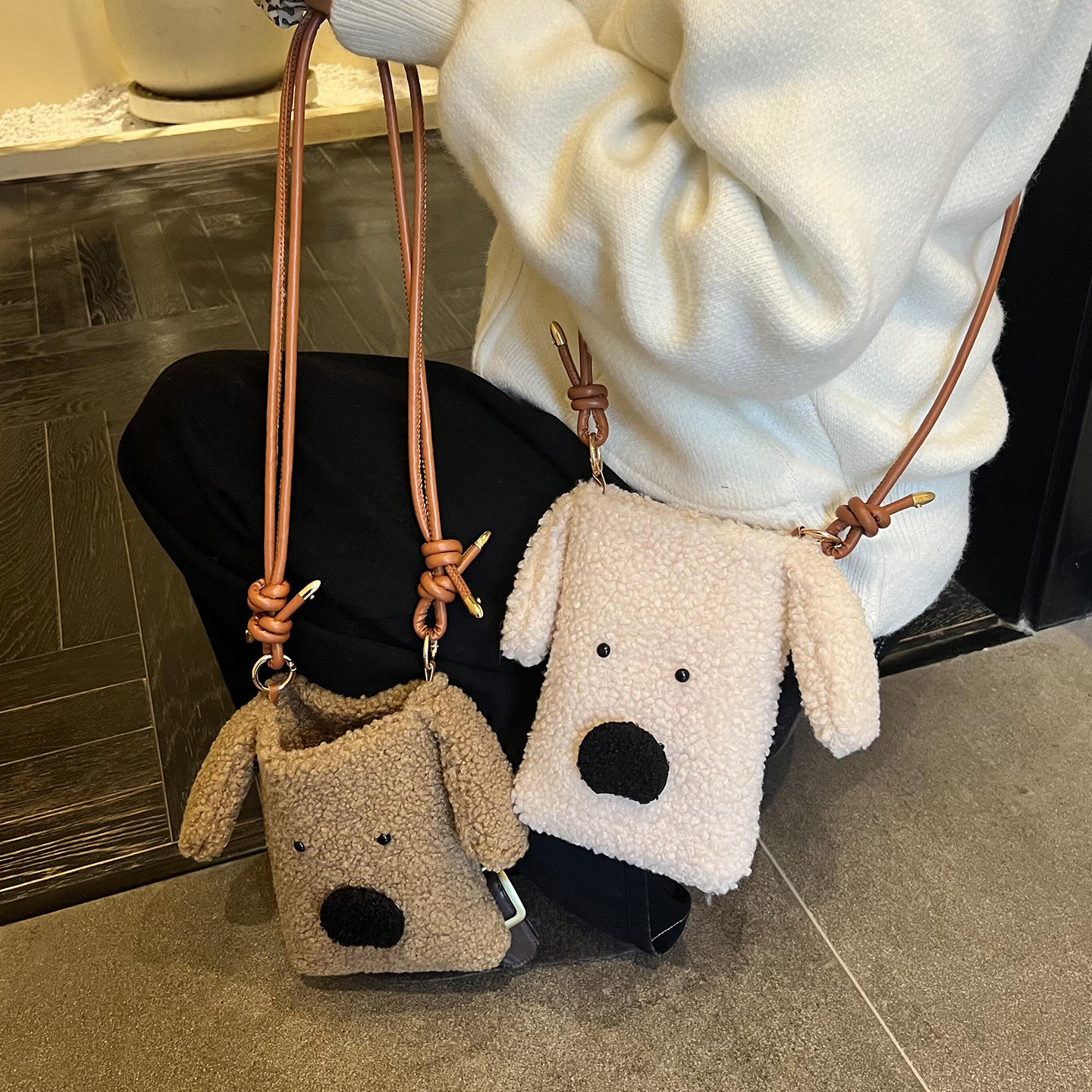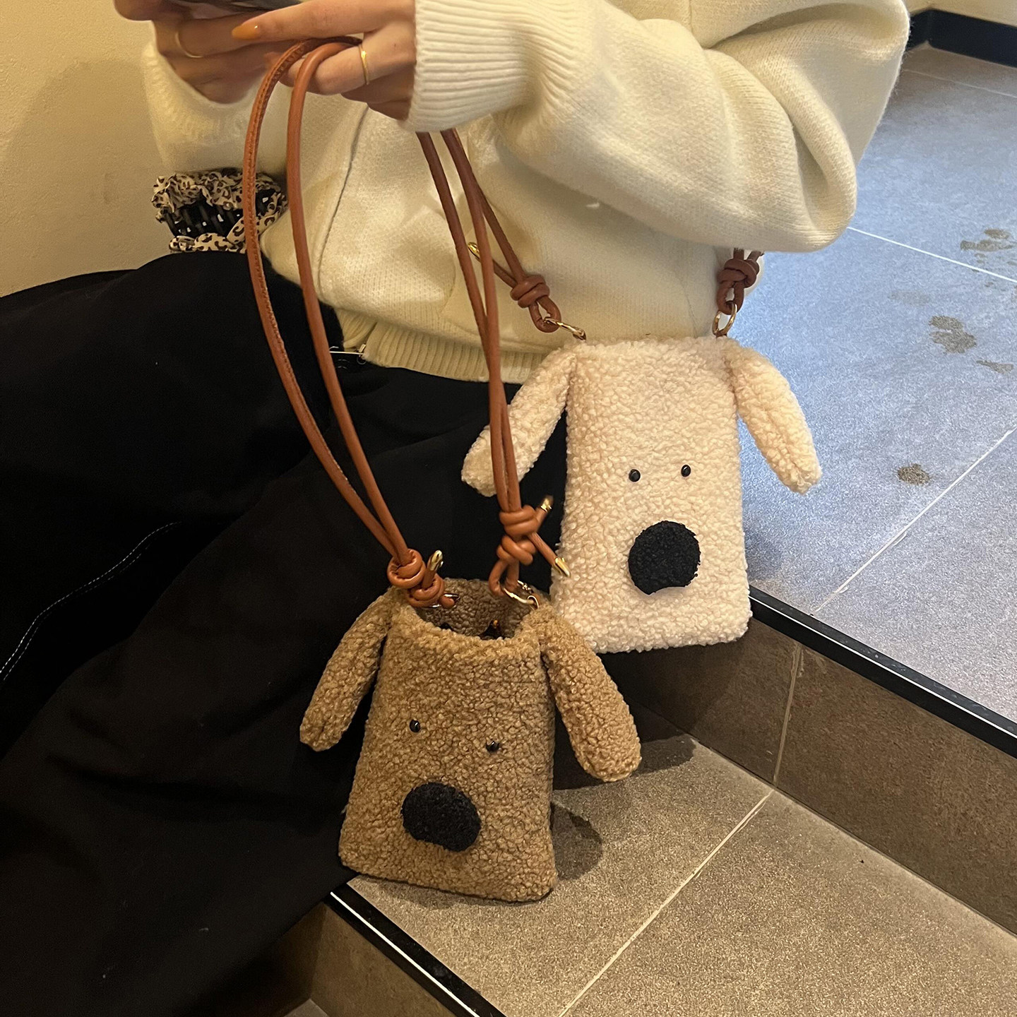 淘宝韩版卡通毛绒小包包女冬季新款可爱狗狗斜挎包日常外出遛弯手机包