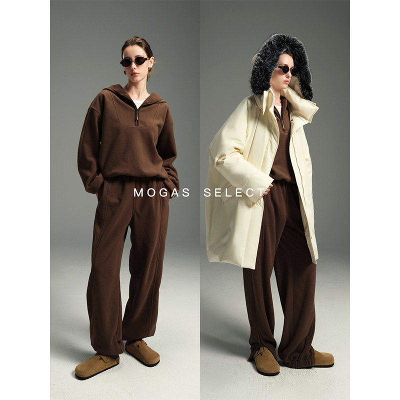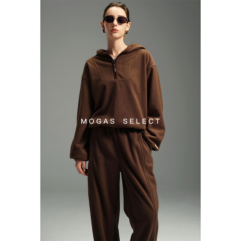 淘宝Mogas软糯舒芙蕾 环葆仿羊毛廓形显瘦连帽摇粒绒卫衣卫裤套装女冬