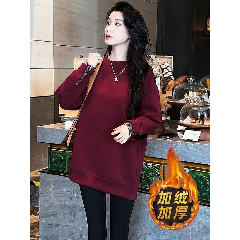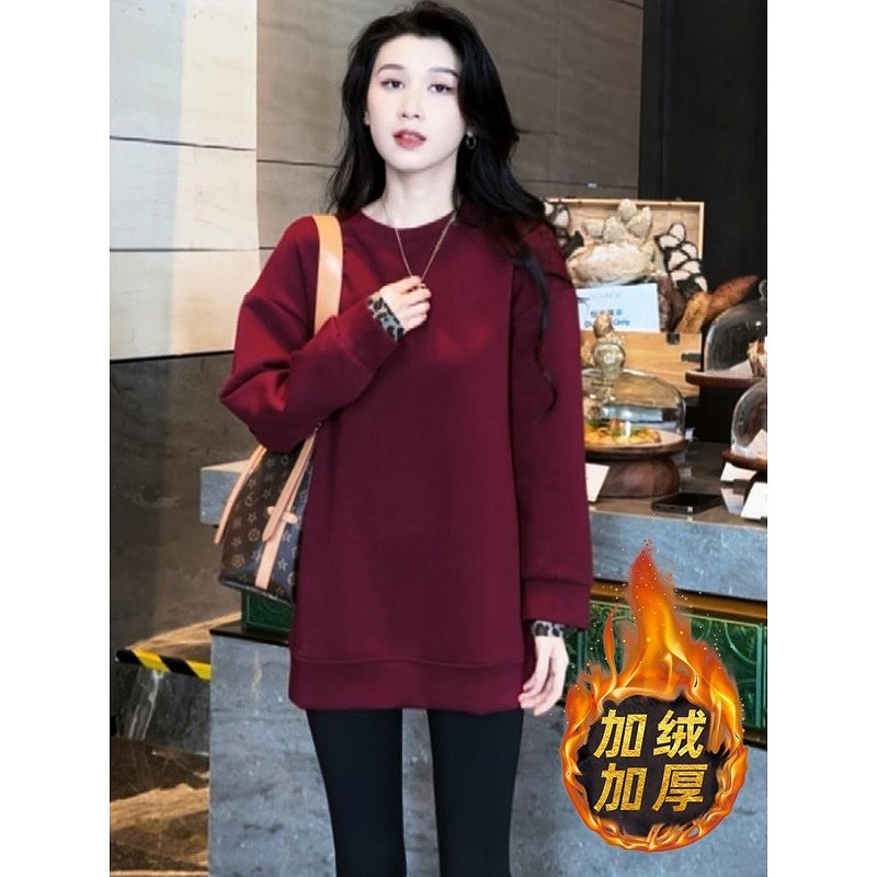 淘美式女童酒红色本命年连帽卫衣秋冬装新款洋气时髦女大童加绒上衣