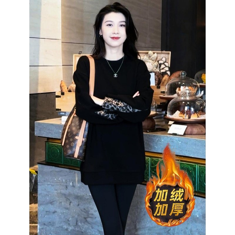 天猫加绒加厚撞色拼接长袖卫衣女2024秋冬季新款时尚休闲气质宽松上衣