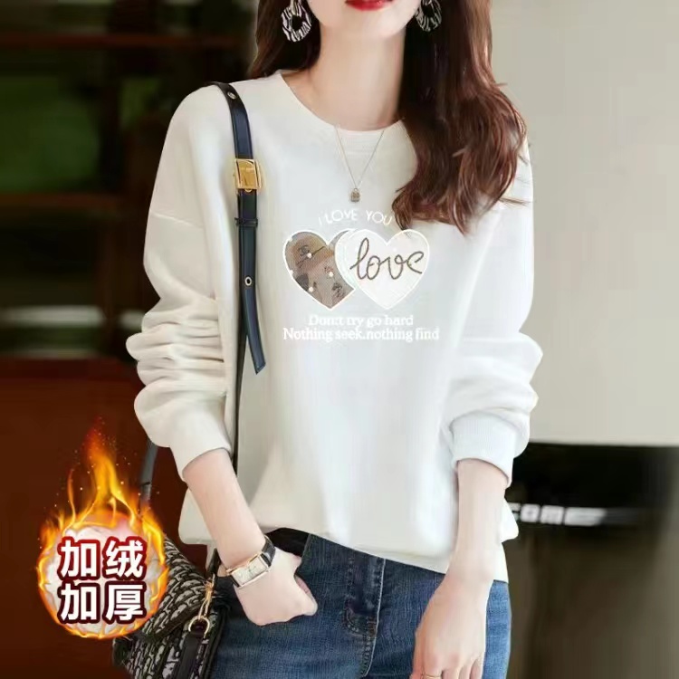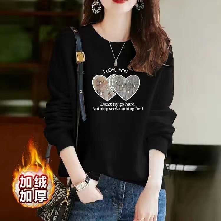 淘宝加绒加厚卫衣女纯棉高档2025新款秋冬装时尚印花圆领百搭上衣外套