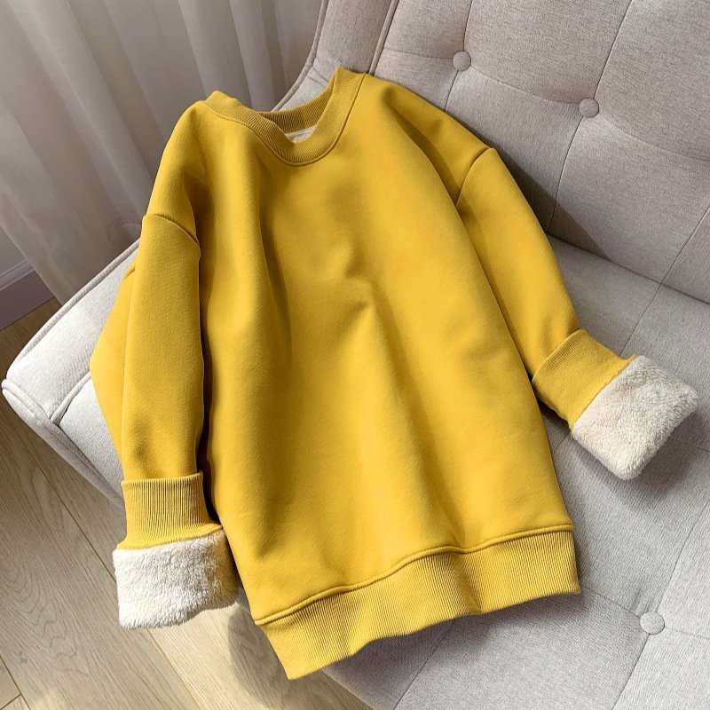 淘宝圆领仿羊羔绒卫衣女2025秋冬宽松韩版加绒加厚长袖保暖超厚绒上衣