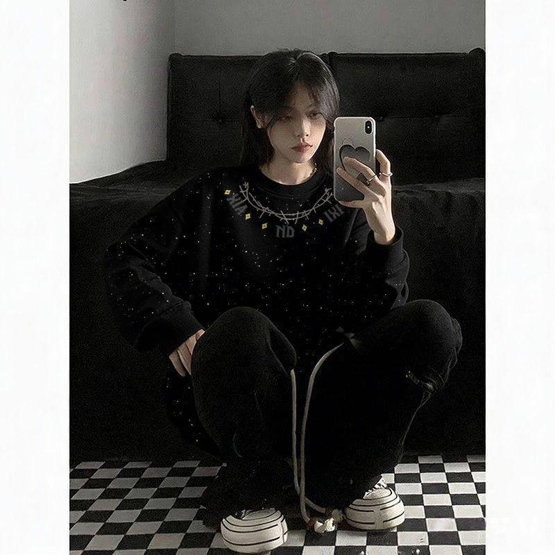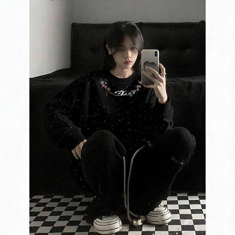 天猫秋冬季新款甜美女款印花满天星亮片圆领卫衣长袖百搭舒适套头上衣