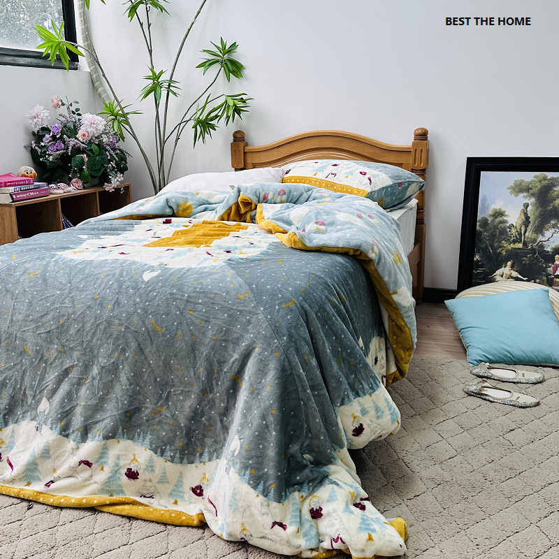 淘宝出口日本 品牌订单 AB版法兰绒印花床上用品 枕套被套 新品断码