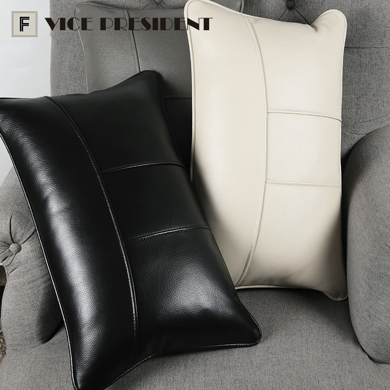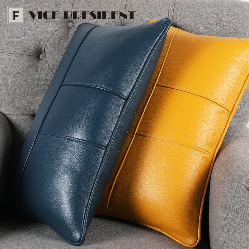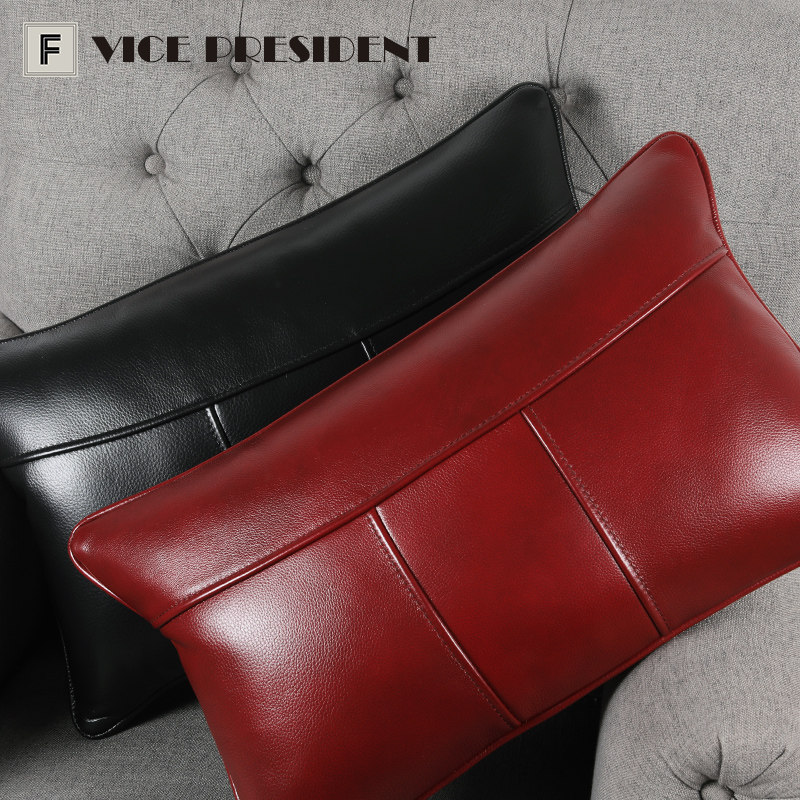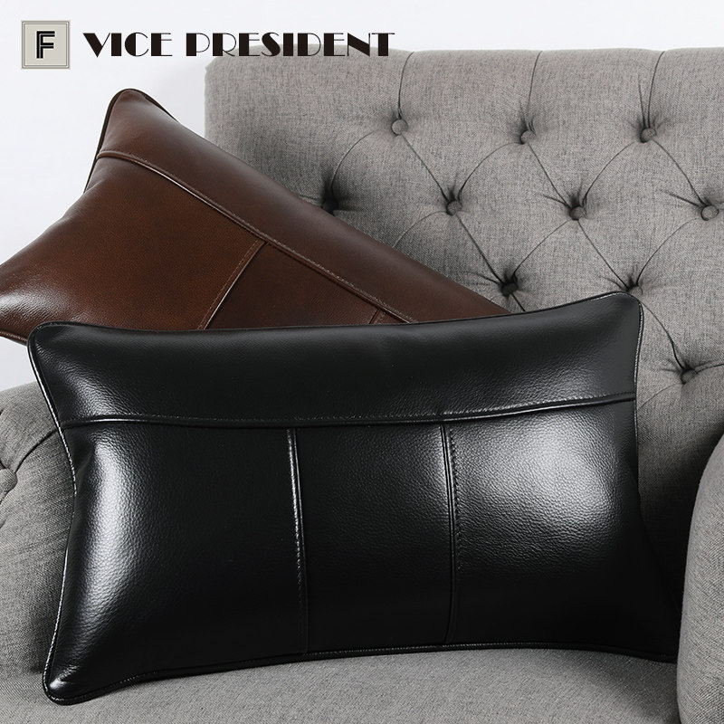 淘宝棕色美式原创真皮靠背垫沙发头层牛皮汽车腰枕抱枕套简约客厅样板