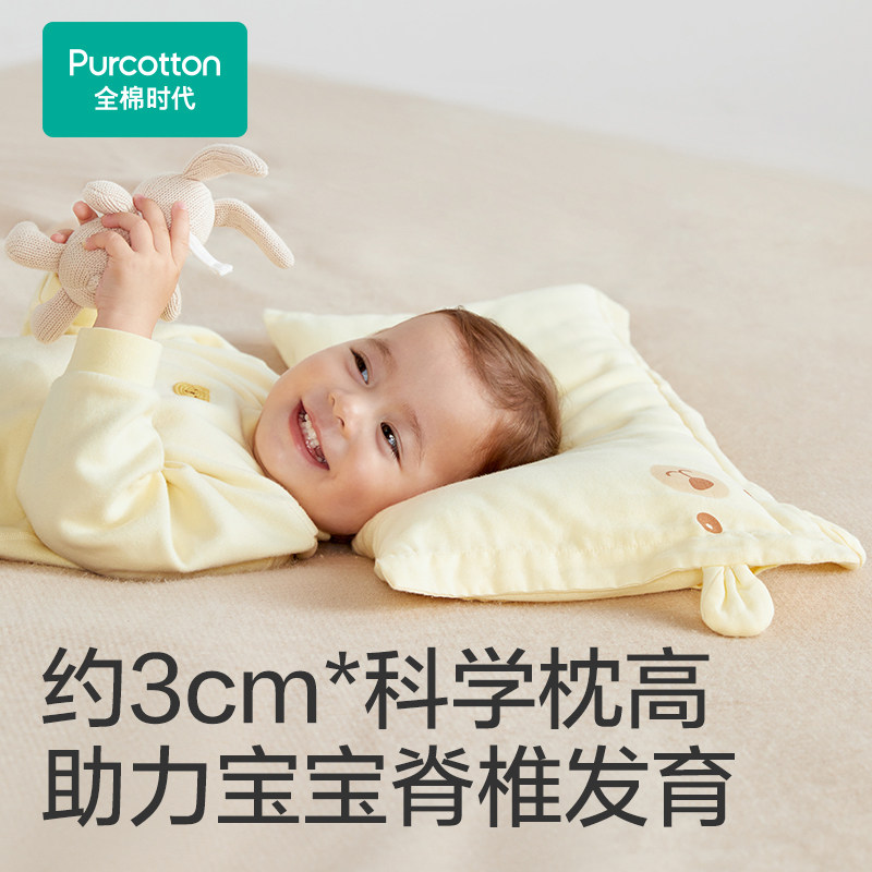 天猫全棉时代宝宝枕头套装婴儿纱布方枕儿童枕芯枕套幼儿园护脊枕