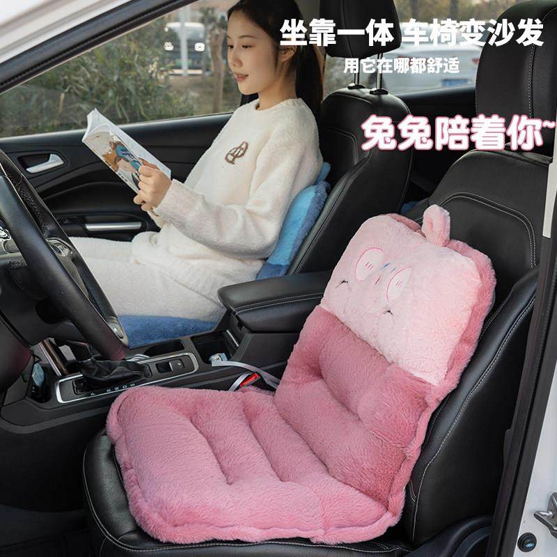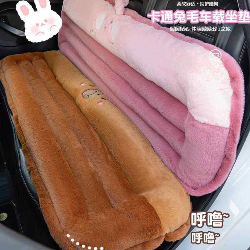 天猫卡通连体汽车坐垫仿兔毛坐垫护腰垫椅垫加绒防滑车载保暖冬季毛绒