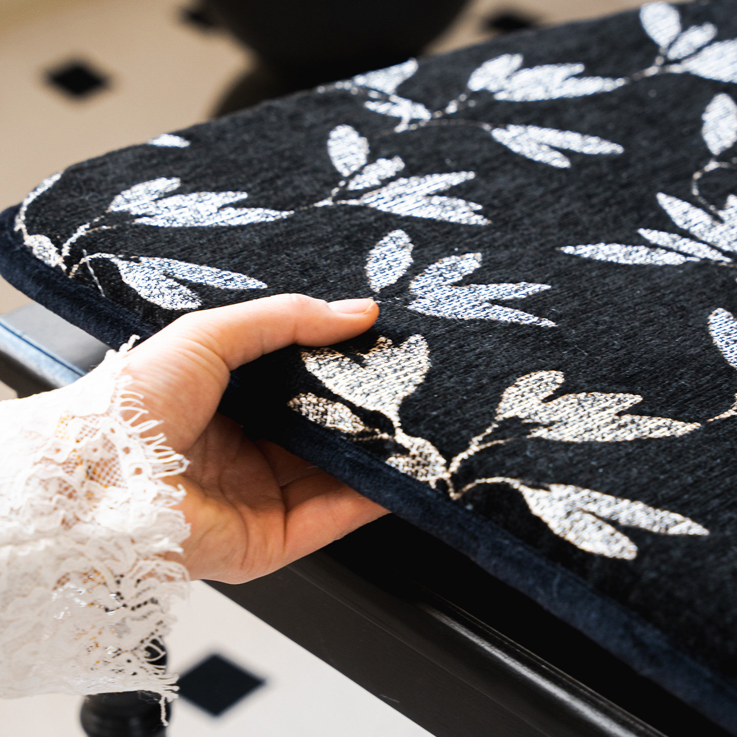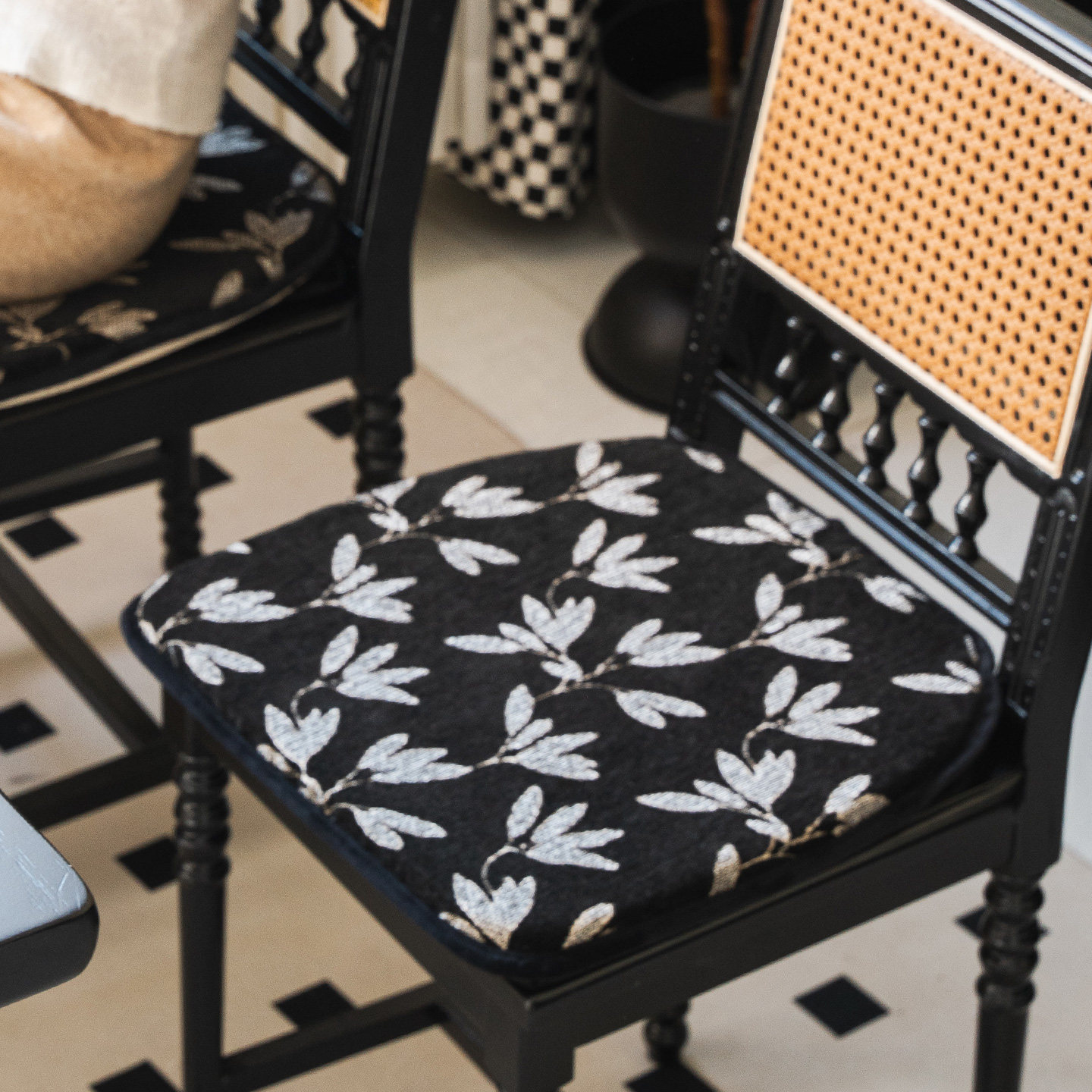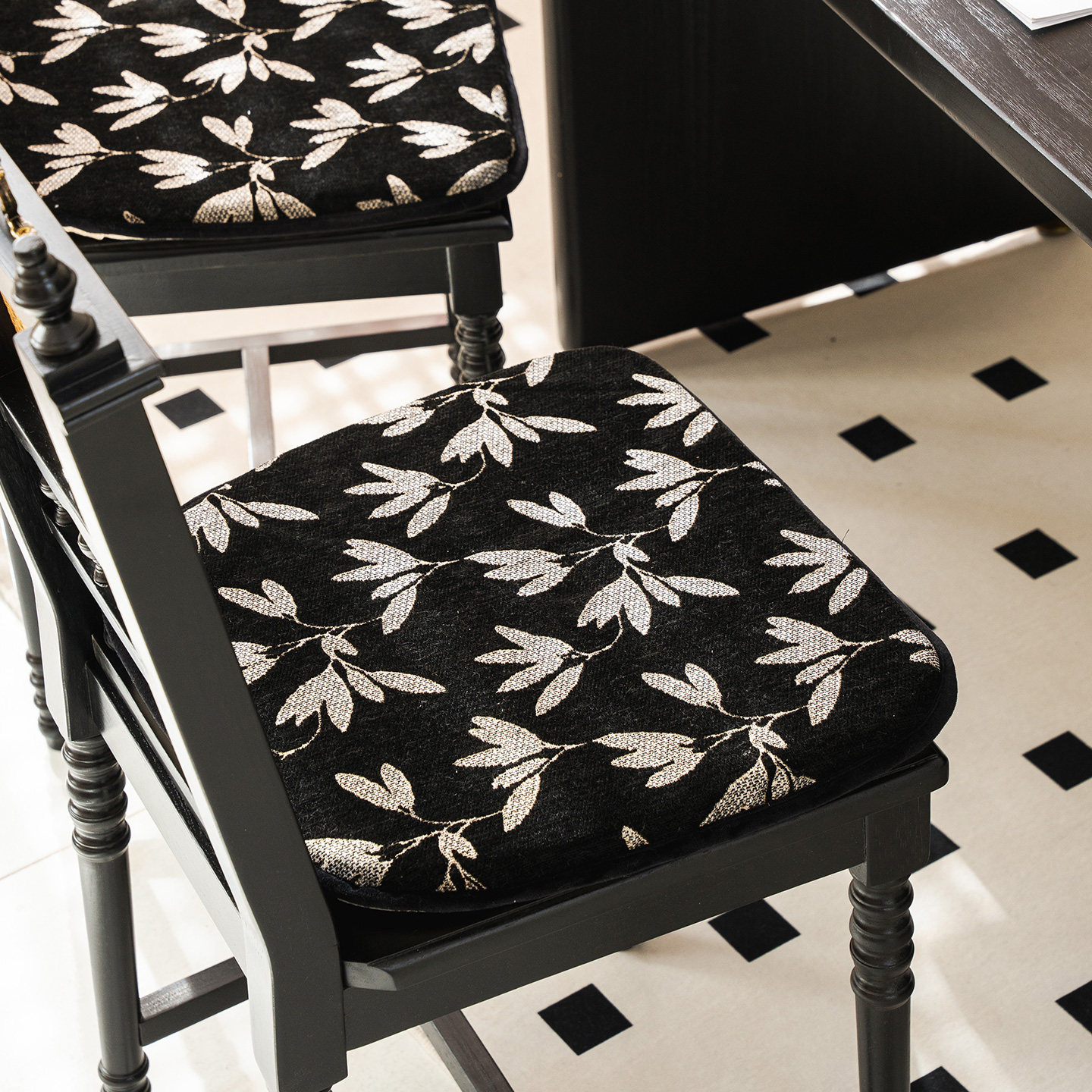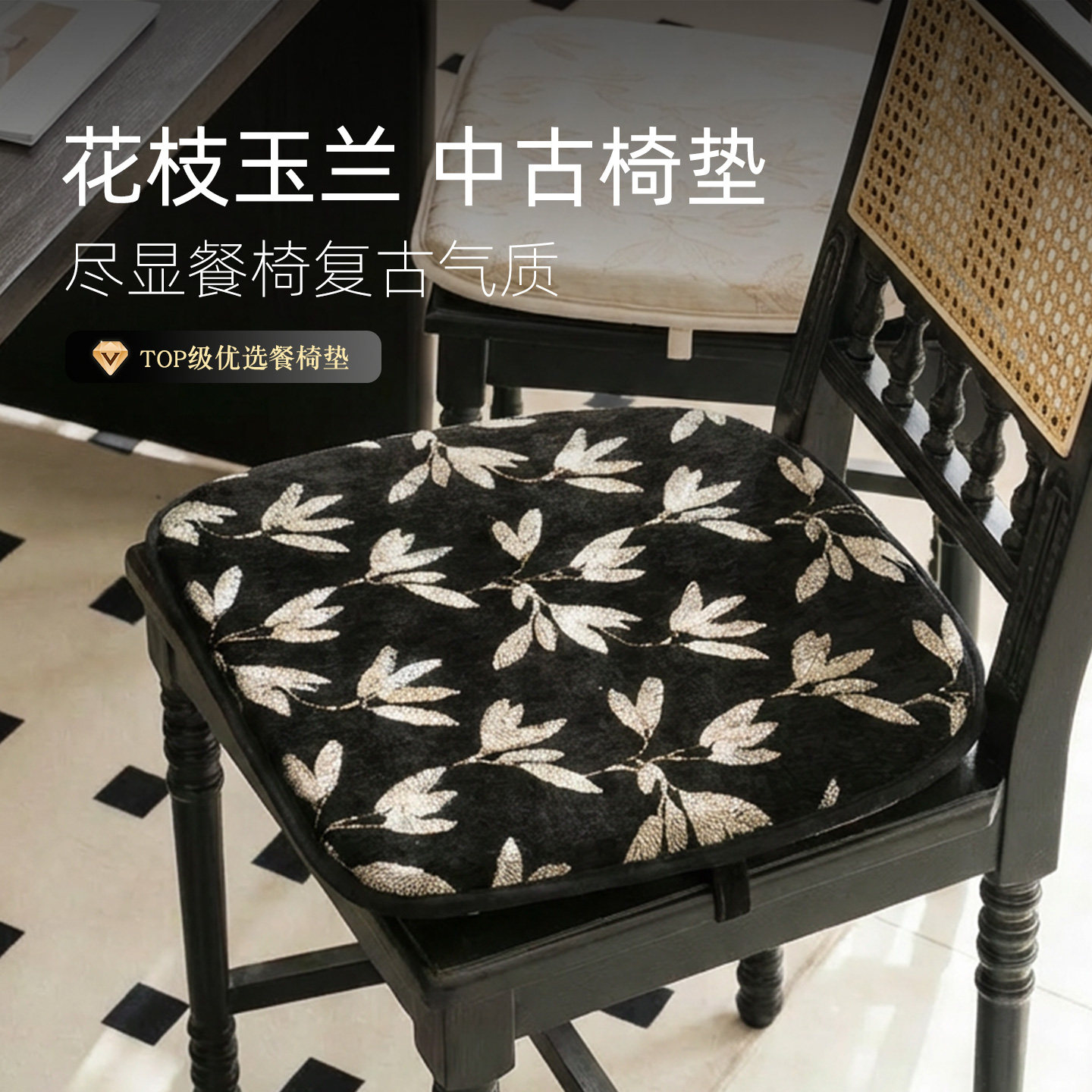 天猫玉兰花中古餐椅垫可拆洗复古办公椅垫黑色椅子坐垫高弹海绵屁垫