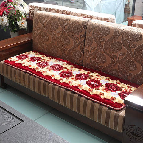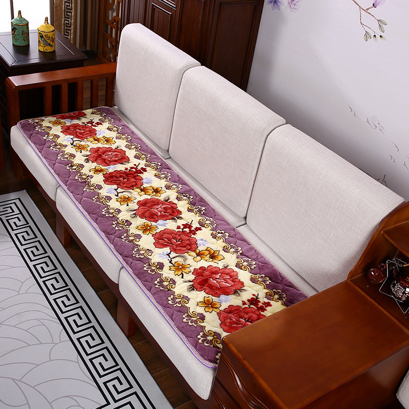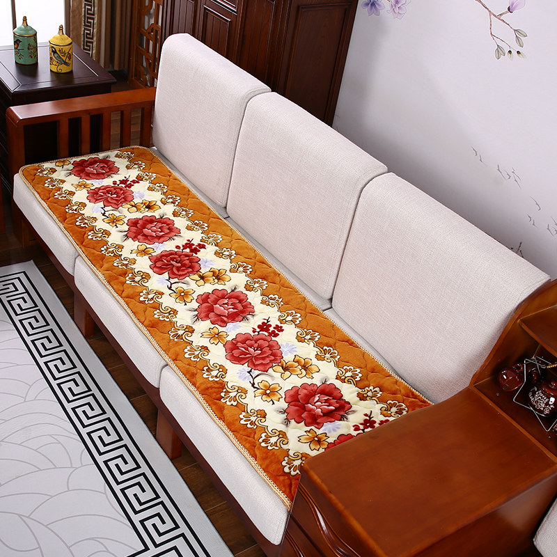 淘宝冬季毛绒加厚实木沙发垫木椅垫印花防滑红木沙发垫三件套四人坐垫
