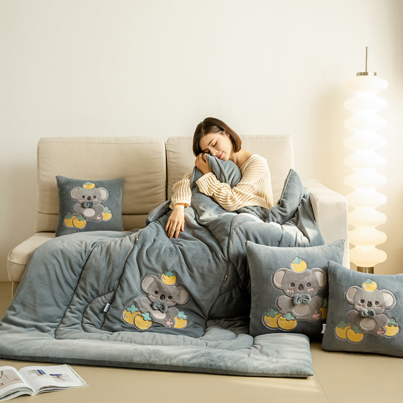 天猫冬季两用抱枕被子加厚牛奶绒卡通沙发汽车靠垫办公室午睡枕头毛毯