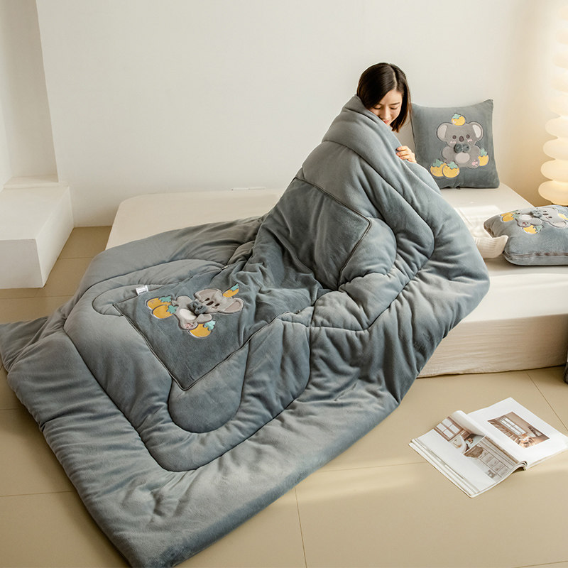 这款冬季两用抱枕被子,采用加厚牛奶绒面料,触感柔软亲肤,保暖性极佳。集抱枕、靠垫、毛毯、午睡枕多功能于一体,轻松应对居家、办公室、沙发、汽车等多种场景。可爱的卡通图案设计,增添温馨童趣氛围,既是实用好物,也是家居装饰亮点。展开可作为温暖盖毯,折叠后变身舒适靠垫或午睡枕,一物多用,便捷省心。特别适合寒冷季节使用,无论是追剧、办公还是小憩,都能带来贴心暖意。小巧轻便,易于收纳携带,是冬日里不可或缺的贴心伴侣。