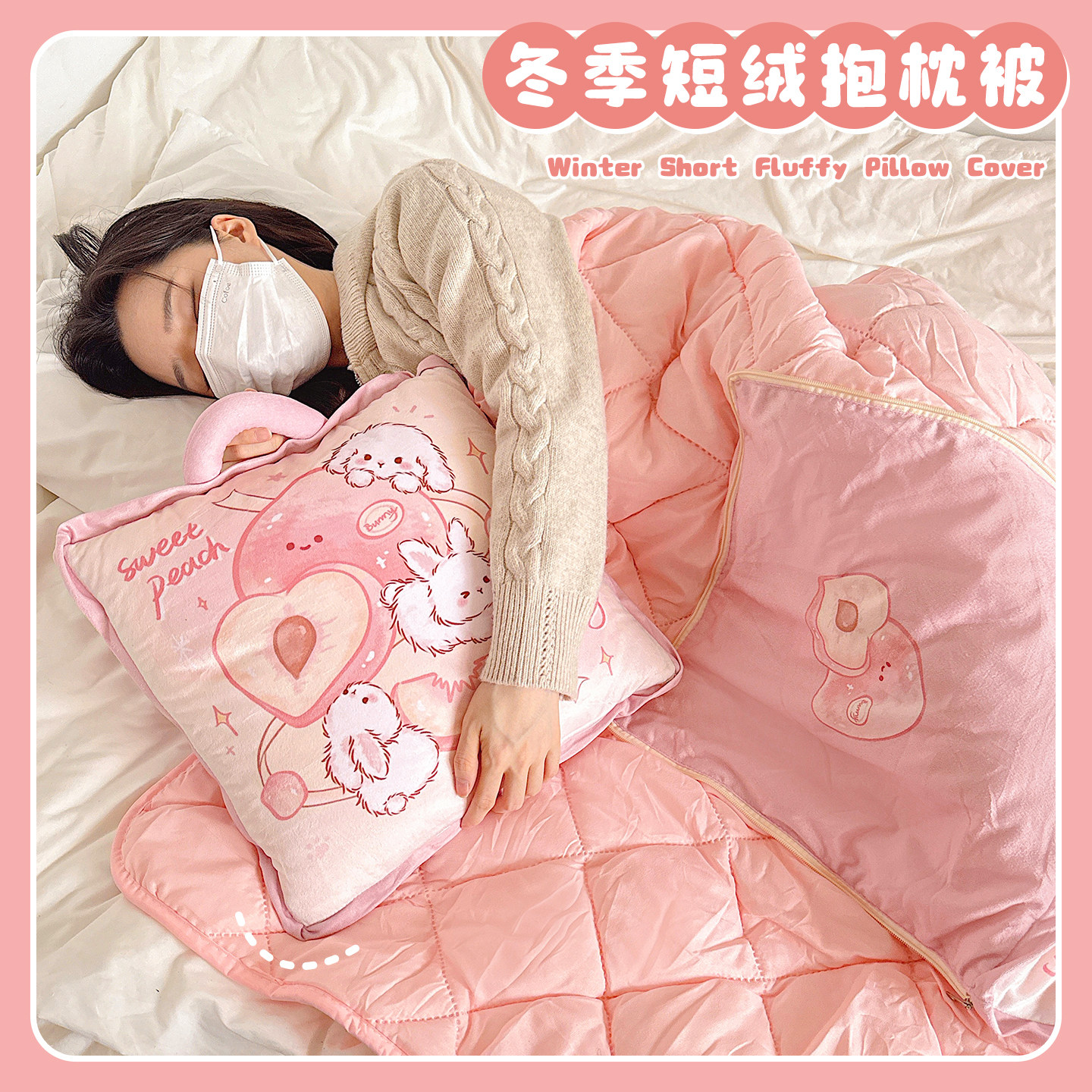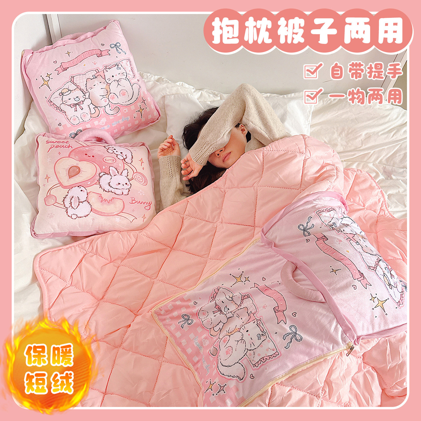 淘宝桃子小兔抱枕毯子两用新款加厚车载办公室午睡被子抱枕二合一女生