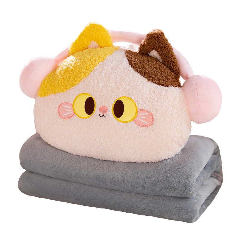 淘宝可爱猫咪办公室抱枕被子两用汽车靠枕折叠毯子车载午睡枕头二合一
