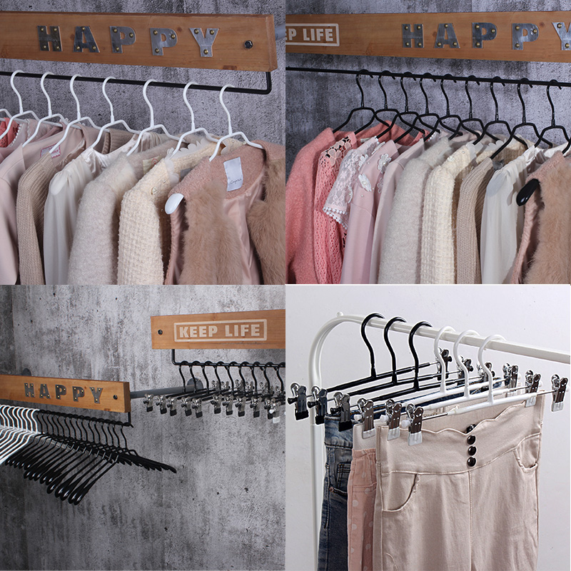 淘宝龙衣堂浸塑服装店防滑无痕衣服撑成人钩儿童裤夹家用裤架金属衣架