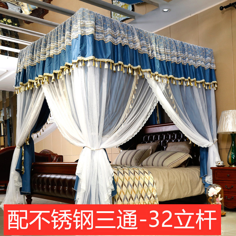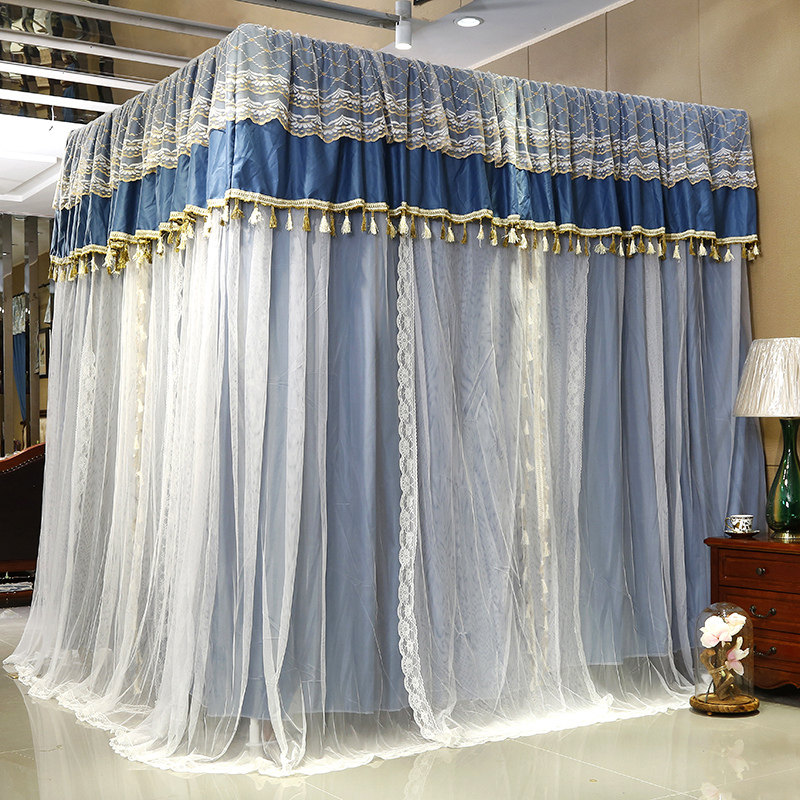 双杆双层纱遮光布床帘蚊帐一体式宫廷落地三开门公主床幔防尘挡风