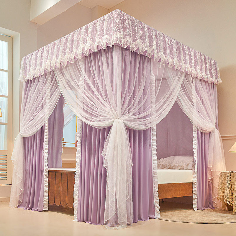 宫廷落地床帘遮光蚊帐支架家用一体式全封闭加密加厚床幔防尘顶布