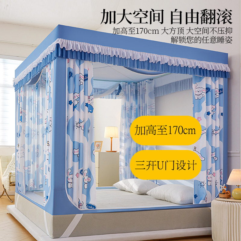 新款U型坐床遮光防尘床帘式蚊帐家用1.5*1.9三开门回底拉链加厚帐
