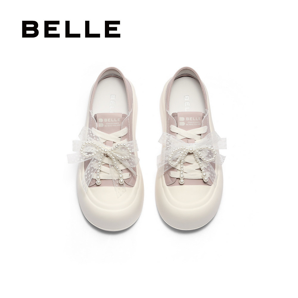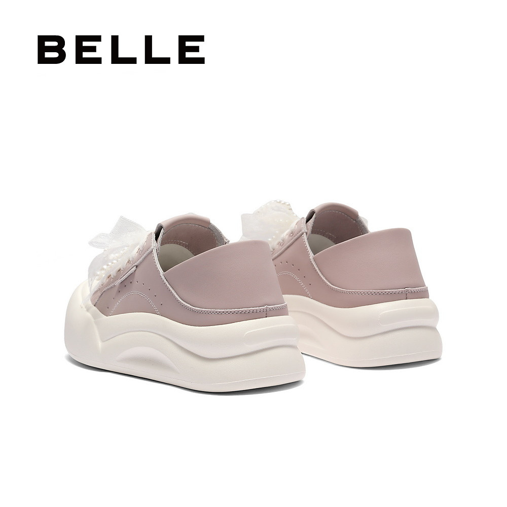 天猫百丽女鞋踩脚可两穿小白板鞋女春季新款蝴蝶结厚底帆布鞋B2629CM5