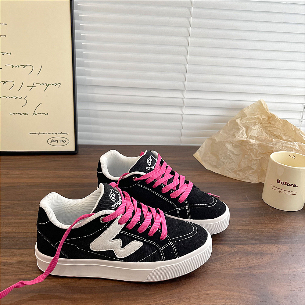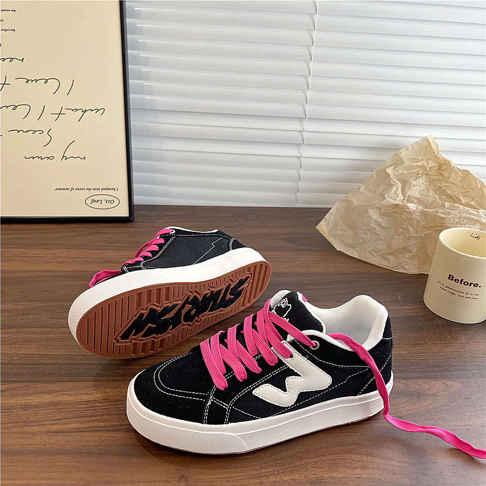 淘宝易少年 黑粉色面包鞋女ins潮2025冬季帆布板鞋小众百搭休闲小白鞋