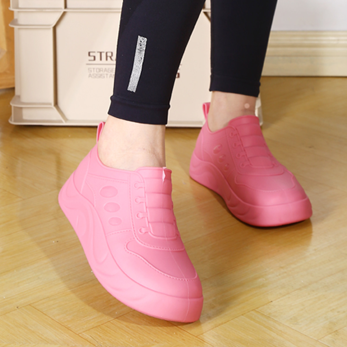 这款女款成人时尚雨鞋,集实用性与美观于一体,专为雨天出行、户外徒步及厨房劳作设计。采用优质硅胶材质,轻盈柔软,具备出色的防水、防滑与耐磨性能,有效应对湿滑路面与复杂环境。高筒设计全面防护双脚,软底减震,长时间穿着依然舒适。简约流畅的线条搭配清新配色,外穿时尚百搭,轻松融入日常穿搭。无论是雨天通勤、郊野徒步,还是厨房清洁、园艺劳作,都能提供安心防护。易穿脱、易清洗,收纳便捷,是现代女性应对多变天气与多种场景的理想之选。
