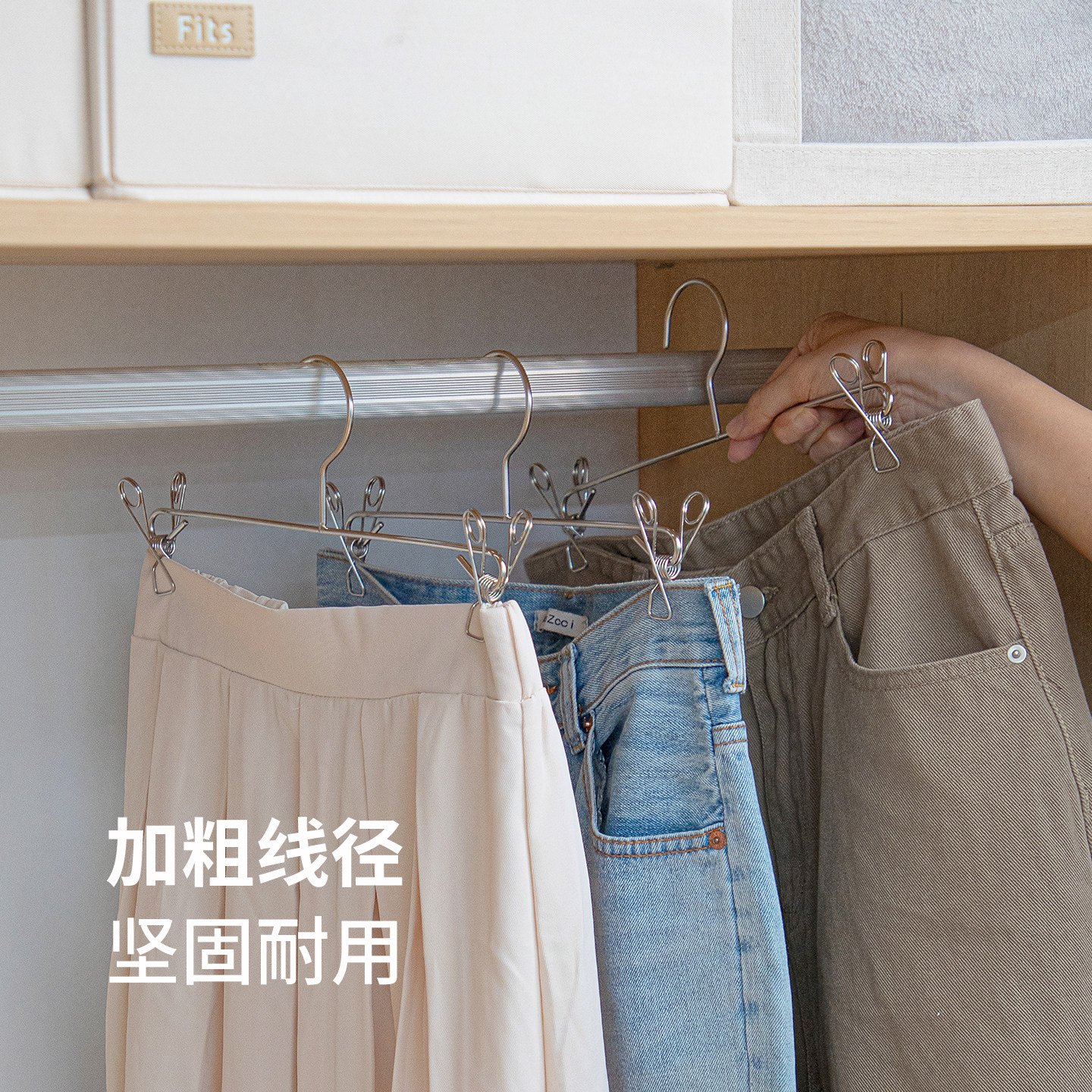 天猫霜山不锈钢裤夹家用裙装裤子收纳宿舍阳台金属晒衣架内衣裤晾晒架