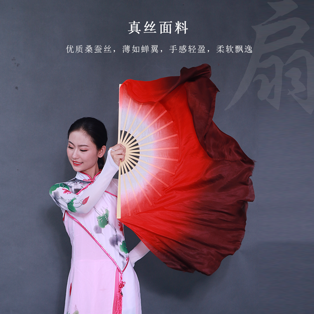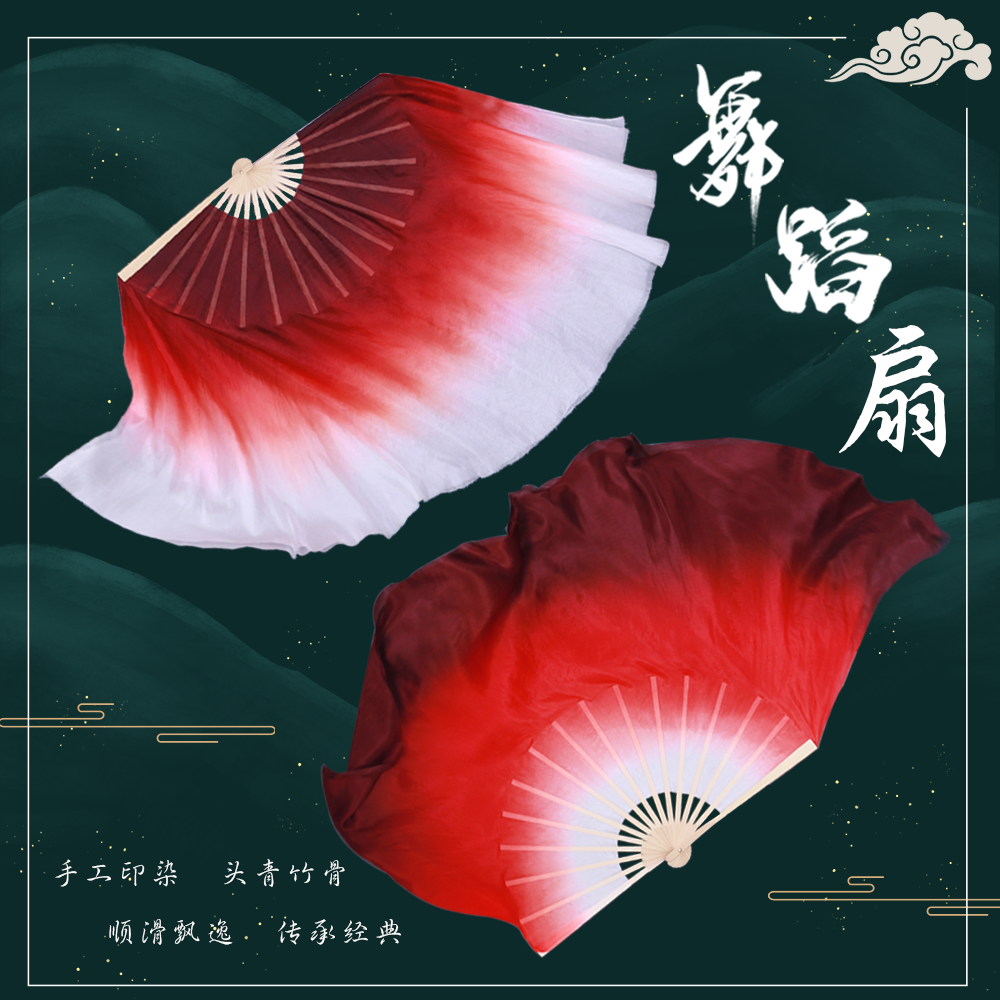 淘宝真丝舞蹈扇九儿抬龙王扇子丝巾酒红古典扇子表演道具万疆舞蹈扇子