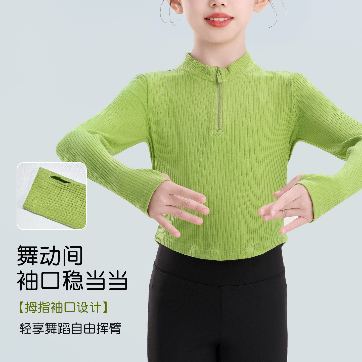 淘宝儿童舞蹈练功服芭蕾舞长袖长裤套装跳舞上衣秋冬立领半拉链外套女