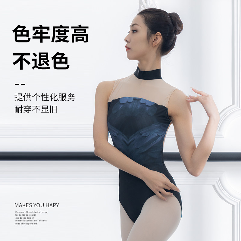 淘宝高领印花芭蕾舞形体服学生基训服空中瑜伽练功衣新款体操服练功服