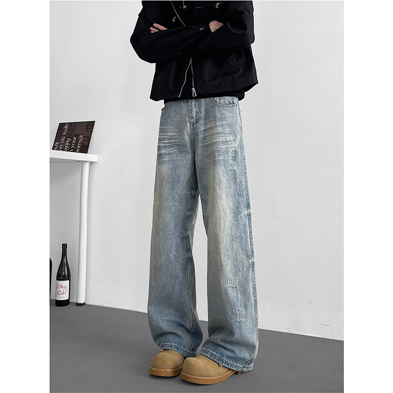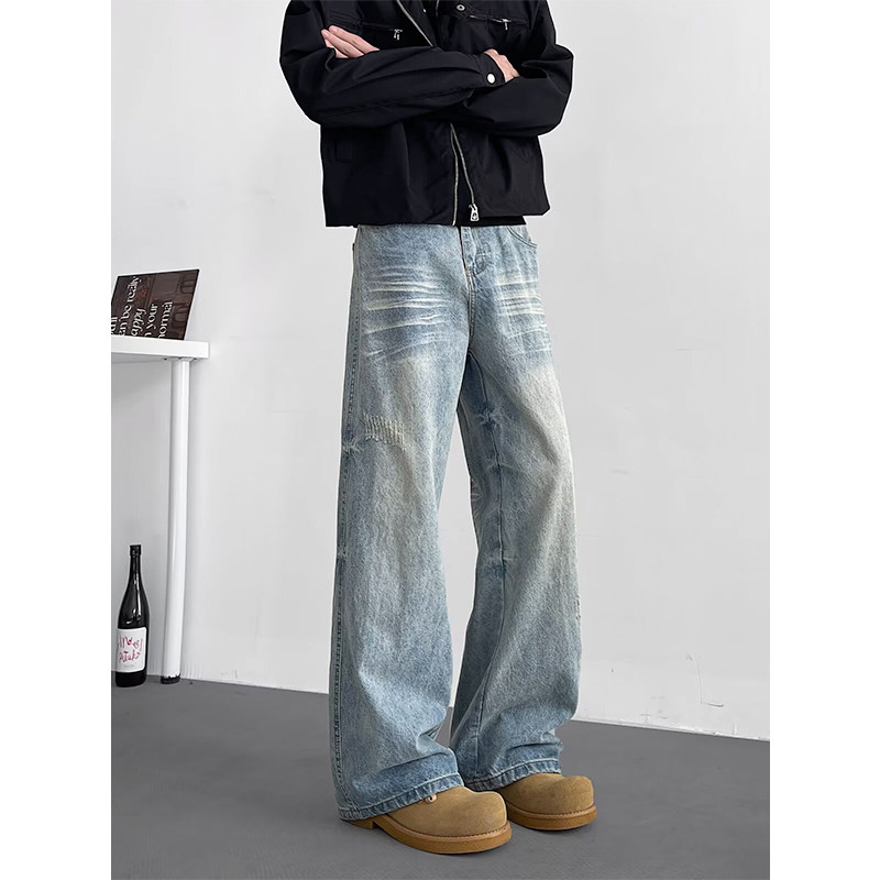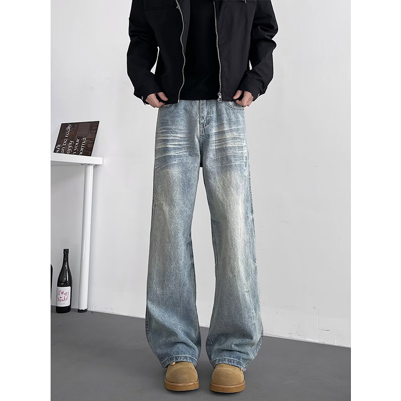 水洗复古牛仔裤男宽松直筒垂感裤ins日系痞帅拖地长裤大码阔腿裤